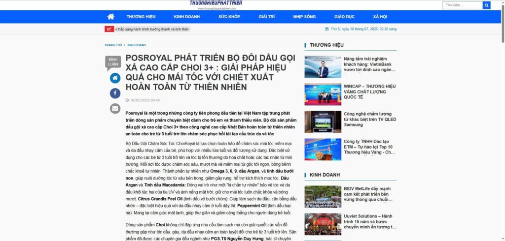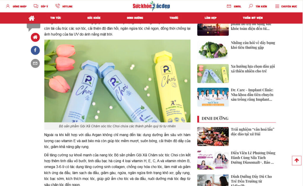 Trong chương trình “Khỏe đẹp cùng chuyên gia” phát sóng trên VTC2, các sản phẩm CHOI đã được giới thiệu đến hàng triệu khán giả. Sự kiện này khẳng định chất lượng và uy tín của một thương hiệu Việt.